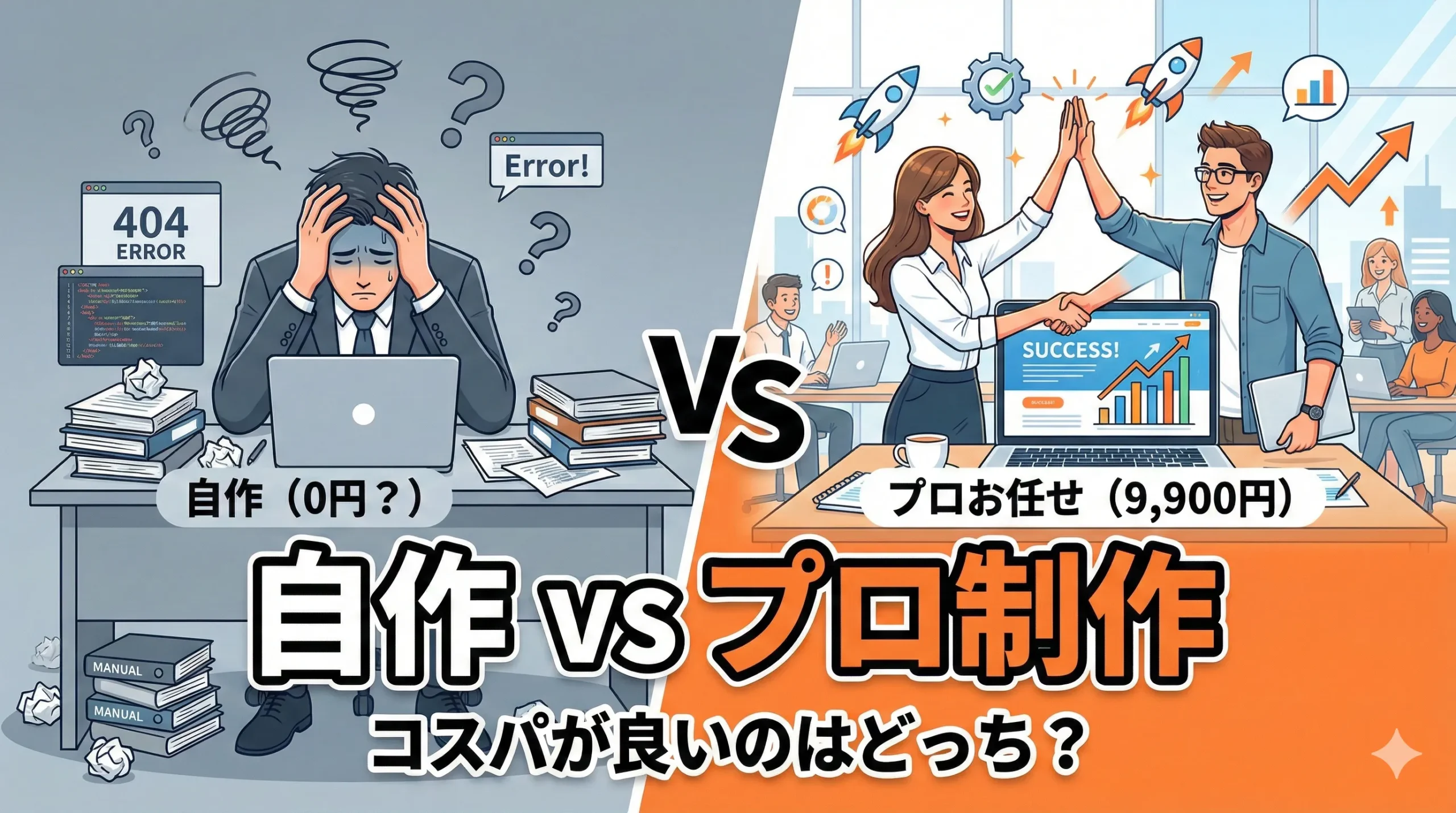 【徹底比較】Wix・自作WordPress vs 月額9,900円のプロ制作|「集客」と「時間」のコスパが良いのはどっち?